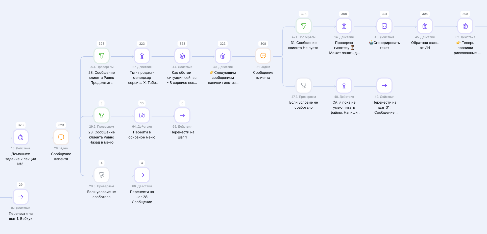 Сценарий работы чат-бота для автоматизированной проверки домашних заданий, созданный на платформе VK CXhub