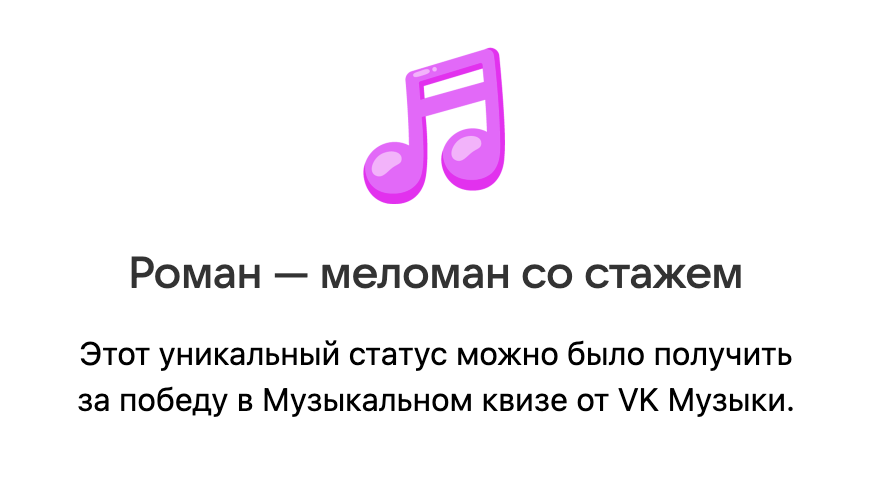 - если пользователь верно отвечал на все вопросы квиза, то мог получить эксклюзивный статус ВКонтакте и добавить его к своему аватару;